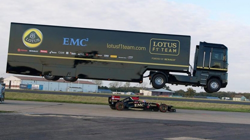 หวาดเสียว ! รถบรรทุกกระโดดข้ามรถแข่งฟอร์มูล่าวัน สร้างสถิติโลก