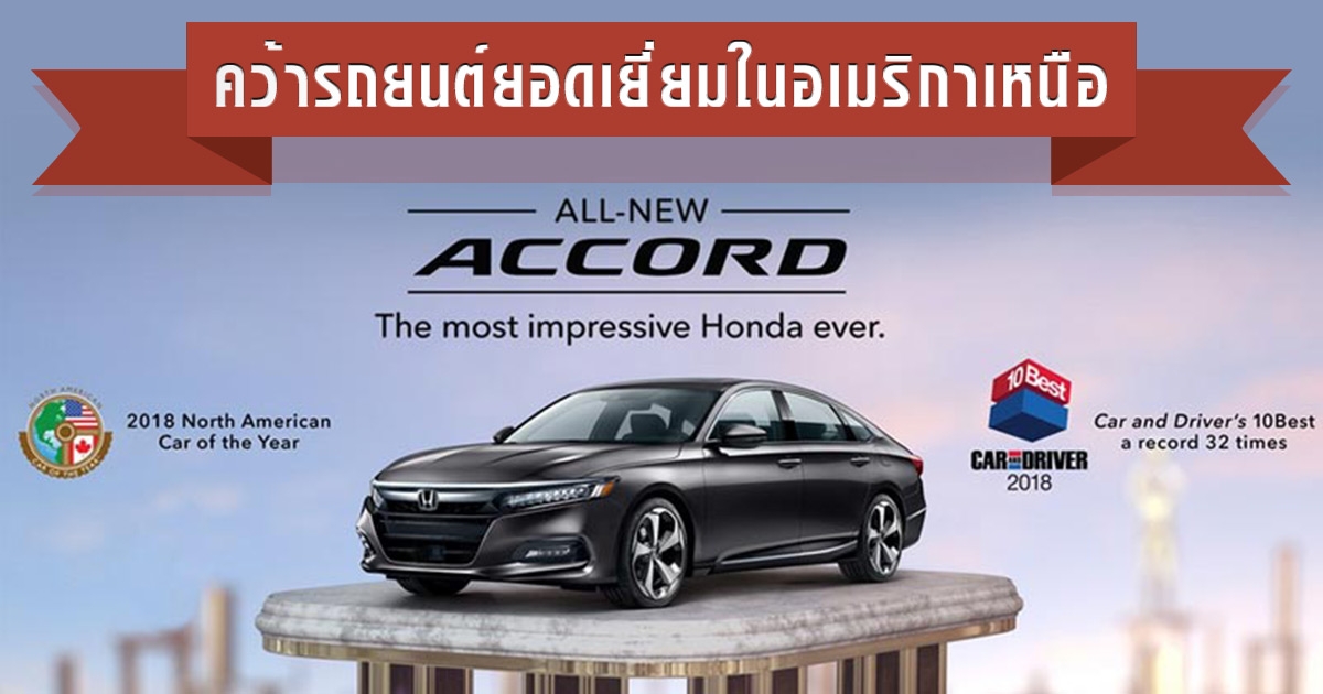Honda Accord 2018 โฉมใหม่ คว้ารถยนต์ยอดเยี่ยมในอเมริกาเหนือ