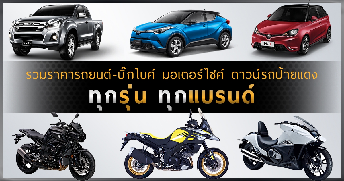 รวมราคารถยนต์-บิ๊กไบค์ มอเตอร์ไซค์ ดาวน์รถป้ายแดง ทุกรุ่น ทุกแบรนด์