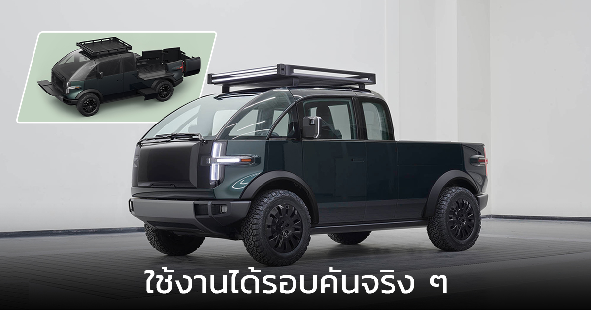 Canoo Pickup รถยนต์ไฟฟ้าแบบปิคอัพขนาดเล็ก ออกแบบดีไซน์สุดล้ำ สามารถใช้งานได้อเนกประสงค์รอบคัน ขุมพลังมอเตอร์ไฟฟ้า 600 แรงม้า ชาร์จเต็มวิ่งไกลกว่า 300 กม. Canoo ผู้ผลิตรถยนต์ไฟฟ้าสตาร์ทอัปจากประเทศสหรัฐอเมริกา หลังจากที่เปิดตัวรถตู้ไฟฟ้าเพื่อการขนส่งไปเมื่อช่วงปลายปี 2020 ที่ผ่านมา ล่าสุดได้เผยโฉมรถกระบะไฟฟ้าไร้มลพิษ Canoo Pickup ที่ถูกออกแบบให้ตัวรถมากับความล้ำสมัย พร้อมฟังก์ชั่นการใช้งานต่าง ๆ รอบตัว เพื่อให้ Canoo Pickup เป็นรถที่รองรับการใช้งานได้อย่างอเนกประสงค์ Canoo Pickup เป็นรถยนต์ไฟฟ้าที่มีขนาดเล็ก มากับมิติความยาวของตัวรถที่ 4677 มม., กว้าง 1980 มม., สูง 1920 มม. และมีระยะฐานล้อ 2850 มม. รูปลักษณ์ภายนอกดูเรียบง่าย ชุดไฟหน้าเป็นรูปตัว T แบบแนวนอน กระจกหน้าบานใหญ่ออกแบบให้โค้งยาวจนไปถึงหลังคา ตัวรถด้านหน้าดีไซน์ตัดตรงเหมือนรถตู้ กระจังหน้าปิดทึบ กันชนหน้าขนาดใหญ่พร้อมมีแผ่นกันกระแทกด้านล่าง ด้านข้างรถมากับซุ้มล้อขนาดใหญ่ รับกับล้อขนาด 18 นิ้ว รัดด้วยยางออฟโรดไว้พร้อมลุยทุกเส้นทาง แต่สิ่งที่โดดเด่นของ Canoo Pickup จะอยู่ที่ตัวรถถูกออกแบบให้มีฟังก์ชั่นการใช้งานต่าง ๆ รอบตัวรถ เริ่มจากด้านหน้าที่เป็นกระจังหน้าเมื่อเปิดออกจะเป็นช่องเก็บของ ในส่วนฝาที่เปิดออกมานั้นปรับเปลี่ยนให้กลายเป็นโต๊ะแบบพับได้ พร้อมกับมีปลั๊กไฟให้ใช้สำหรับการทำกิจกรรมต่าง ๆ ด้านข้างตัวรถทั้ง 2 ฝั่ง สามารถเปิดออกได้ เพื่อขนสัมภาระขึ้นลงอย่างสะดวก หรือจะทำเป็นที่วางของ ขยับมาที่บริเวณใกล้ซุ้มล้อหลังถูกดีไซน์ให้เป็นเหมือนลิ้นชัก สำหรับเก็บสิ่งของขนาดเล็ก ส่วนไฮไลท์จะอยู่ที่กระบะท้าย สามารถยืดออกเพื่อเพิ่มความยาวจาก 6 ฟุตเป็น 8 ฟุต สำหรับบรรทุกสิ่งของที่มีความยาว นอกจากนั้นในส่วนกระบะยังติดตั้งปลั๊กไฟ และไฟ LED ส่องสว่างรอบกระบะ ในขณะที่ตัวพื้นกระบะยังออกแบบเป็นช่องเพื่อแบ่งพื้นที่การใช้สอย หรือเก็บของได้อย่างเป็นระเบียบ ในส่วนหลังคายังออกแบบเพื่อรองรับสำหรับคนที่ต้องการติดแล็คหลังคาเพื่อใส่ถาดกระบะบนหลังคา หรือใส่หลังคาครอบกระบะหลังเพื่อวางเต้นท์สำหรับสายแคมปิ้ง สำหรับภายในห้องโดยสารของ Canoo Pickup รถกระบะไร้มลพิษคันนี้ ดีไซน์แบบล้ำยุค ประตูเปิดเข้าห้องโดยสารเปิดแบบตู้กับข้าว พวงมาลัยทรงสี่เหลี่ยมขนาดเล็ก หน้าจอแสดงผลวางยาวเต็มแผงแดชบอร์ด ที่ออกแบบให้อยู่ลึกเข้าไปทางด้านหน้า เบาะนั่งหุ้มด้วยหนังสีดำเกรดพรีเมียม เป็นแบบ 2 ที่นั่ง มาพร้อมที่วางแขนทั้ง 2 ฝั่ง ด้านหลังมีเบาะนั่งที่สามารถพับเก็บได้ ด้านพละกำลัง Canoo Pickup ติดตั้งมอเตอร์คู่ที่ให้สมร