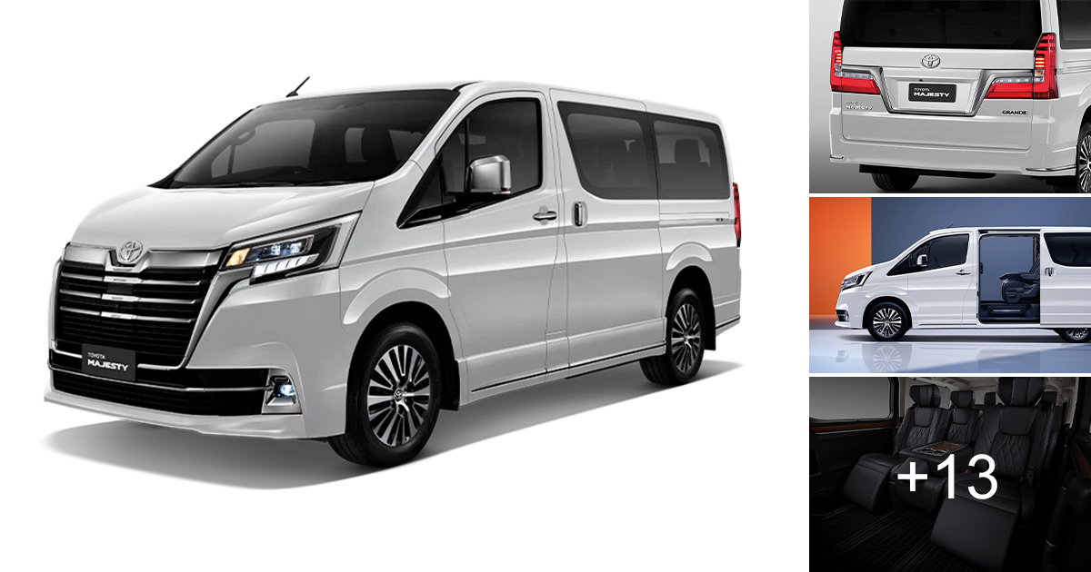 Toyota Majesty 2025 รถตู้พรีเมียมเครื่องยนต์ดีเซล เบาะ 4 แถว 11 ที่นั่ง มี 2 รุ่นย่อย ราคาเริ่มต้น 1,994,000 บาท Toyota Majesty 2025 (โตโยต้า มาเจสตี้ 2025) รถตู้โดยสารพรีเมียม 11 ที่นั่ง จัดวางเบาะ 4 แถวแบบ 2:3:2:4 โดยเบาะแถว 2 และ 3 ได้รับการออกแบบให้มีขนาดใหญ่พร้อมที่รองน่องเพื่อความสบายขระเดินทาง และปลอดภัยด้วยถุงลมนิรภัยรอบคันและ Toyota Safety Sense กล้องมองภาพรอบคัน ทนทานและประหยัดด้วยเครื่องยนต์ดีเซลที่เหมาะสำหรับใช้งานทางไกลบ่อยครั้ง โดยแบ่งเป็น 2 รุ่นย่อย คือ Premium และ Grande ส่วนสีตัวถังมีให้เลือก 2 สี Toyota Majesty 2025 มาในสไตล์ตัวถังแบบ Semi-Bonnet โดยรุ่นปี 2025 ภายนอกยังไม่มีการปรับอะไรเพิ่มเติม กระจังหน้า กระจกมองข้าง มือจับประตูตกแต่งด้วยโครเมียม ติดตั้งสเกิร์ตรอบคัน สปอยเลอร์หลัง ประตูสไลด์ไฟฟ้าซ้าย-ขวา ไฟหน้า LED เปิด-ปิดอัตโนมัติ กระจกมองข้างปรับ-พับไฟฟ้า ที่ปัดน้ำฝนอัตโนมัติ ทั้งสองรุ่น ส่วนมิติตัวถังมีความยาว 5,300 มม. กว้าง 1,970 มม. สูง 1,990 มม. ความยาวฐานล้อ 3,210 มม.ให้ล้ออัลลอยซี่ถี่ขนาด 17 นิ้ว เป็นอุปกรณ์มาตรฐาน ภายใน Toyota Majesty 2025 จัดวางเบาะแบบ 4 แถว 11 ที่นั่ง มี 2 โทนสี คือดำกับครีมขึ้นอยู่กับสีตัวถังภายนอก เบาะหุ้มหนังแท้ เบาะคู่หน้าปรับไฟฟ้า คนขับ 8 ทิศทาง ผู้โดยสาร 4 ทิศทาง รุ่น Grande เพิ่มปุ่มปรับเบาะข้างพนักพิงฝั่งผู้โดยสาร เบาะแถวสองแบบ 3 ที่นั่ง โดยเบาะกลางออกแบบให้พับพนักพิงเป็นที่พักแขนและวางแก้วน้ำ ขณะที่ที่เบาะฝั่งซ้าย-ขวามาพร้อมที่รองน่อง รุ่น Grande เพิ่มฟังก์ชันบริหารหลัง เบาะแถวสามเป็นแบบแยก 2 ที่นั่ง มีที่รองน่องและที่วางแขนพับได้ เว้นช่องตรงกลางทางเดินเพื่อเข้าไปยังแถวสุดท้ายแบบ 4 ที่นั่ง แยกพับ 50:50 ตลบขึ้นด้านข้างได้ ส่วนอุปกรณ์มีมาตรวัดแอนาล็อกเรืองแสง (Optitron) คู่กับจอแสดงข้อมูลขับขี่ 4.2 นิ้ว จออินโฟเทนเมนต์แบบสัมผัส 8 นิ้ว รองรับ Apple CarPlay และ Android Auto มีช่องต่อ USB-A จำนวน 1 จุด และ USB-C จำนวน 6 จุด ระบบแอร์อัตโนมัติ 2 ตอน ระบบกรองอากาศ nanoe เบรกมือไฟฟ้า แต่รุ่น Grande จะเพิ่มการเชื่อมต่อ Apple CarPlay ไร้สาย ระบบ T-Connect ระบบนำทาง ลำโพงจาก 6 เป็น 12 จุด เครื่องยนต์ดีเซล 4 สูบ ขนาด 2.8 ลิตร เทอร์โบแปรผัน อินเตอร์คูลเลอร์ ให้กำลังสูงสุด 163 แรงม้า ที่ 3,600 รอบ/นาที และแรงบิด 420 นิวตันเมตร ที่ช่วง 1,600-2,200 รอบ/นาที เกียร์อัตโนมัติ 6 สปีด ขับเคลื่อนล้อหลัง Toyota Majesty 2025 ทั้งสองรุ่นติดตั้งถุงลมนิรภัย 9 ตำแหน่ง (ม่านถุงลมนิรภัยแยกเป็น 4 ตำแหน่งซ้าย-ขวา สำหรับผู้โดยสารตอนหน้าและหลัง), เบรก ABS, ระบบควบคุมการทรงตัวและการลื่นไถล, ระบบเตือนจุดอับสายตา, เตือนการจราจรขณะถอย, ระบบรักษาความเร็วอัตโนมัติ, กล้องมองหลังและแสดงภาพรอบคัน, จุดยึดเบาะนั่งเด็ก ISOFIX 