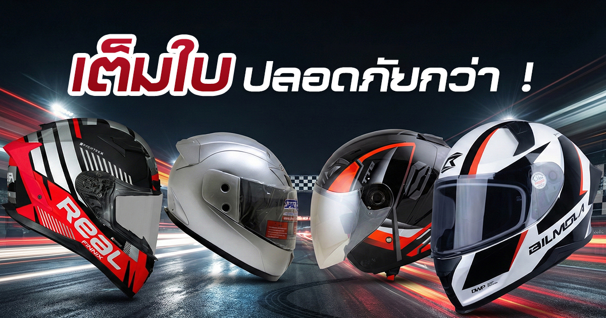 รวม 10 หมวกกันน็อกเต็มใบ ปี 2026 ได้มาตรฐานความปลอดภัย น้ำหนักเบา ใส่สบาย ราคาไม่แรง หมวกกันน็อกเต็มใบ เป็นอุปกรณ์สำคัญสำหรับผู้ขับขี่มอเตอร์ไซค์ เพราะช่วยปกป้องทั้งศีรษะ ใบหน้า และคาง ซึ่งเป็นจุดเสี่ยงต่อการบาดเจ็บรุนแรง ซึ่งปัจจุบันมีหมวกกันน็อกรุ่นใหม่ให้เลือกไม่น้อยและ ทั้งแบรนด์ไทยและต่างประเทศ พร้อมมาตรฐาน มอก. บางรุ่นยังผ่านมาตรฐานสากล เช่น ECE หากใครกำลังอยากเลือกหมวกกันน็อกเต็มใบ ใบใหม่ เราได้รวบรวม 10 หมวกกันน็อกเต็มใบ 2026 รุ่นใหม่ล่าสุด ที่ได้รับความนิยมสูง ปลอดภัยได้มาตรฐาน ราคาเข้าถึงง่าย ประมาณ 1,000–5,000 บาท มาเป็นแนวทางในการตัดสินใจว่าแบบไหนเหมาะกับคุณกันบ้าง มาตรฐาน มอก. ขนาดกระชับพอดี น้ำหนักไม่เกิน 1,600 กรัม มีระบบระบายอากาศ ไม่ว่าจะเลือกหมวกกันน็อกยี่ห้อไหน ควรเป็นหมวกที่มีมาตรฐานความปลอดภัย เช่น มอก. หรือ ECE เป็นสิ่งสำคัญที่สุด เพราะช่วยลดความเสี่ยงจากอุบัติเหตุได้อย่างมาก คนขี่มอเตอร์ไซค์ทุกวัน คนขี่ทางไกล คนต้องการความปลอดภัยสูง การลงทุนกับหมวกกันน็อกเต็มใบถือว่าเป็นเรื่องสำคัญและคุ้มค่าที่สุดสำหรับความปลอดภัย เพราะช่วยลดความเสี่ยงต่อการบาดเจ็บรุนแรงได้อย่างมาก ซึ่งมีตัวเลือกดี ๆ มากมายในราคาที่เข้าถึงได้ หากต้องขับขี่มอเตอร์ไซค์เป็นประจำจะช่วยให้ขับขี่ได้อย่างปลอดภัยมากขึ้น 10 อันดับ มอเตอร์ไซค์ออโต้ ประหยัดน้ำมันที่สุด 2026 จาก ECO Sticker ขอบคุณข้อมูลและภาพจาก : spacecrownthailand.com, indexhelmets.com, real-helmets.com, raidenforce.com, thaihonda.co.th, sharkhelmetsthailand.com, เฟซบุ๊ก MT Helmets Thailand หมวกกันน็อค, เฟซบุ๊ก LS2 Thailand by Comforta, เฟซบุ๊ก HJC Helmet Thailand และ เฟซบุ๊ก Bilmola