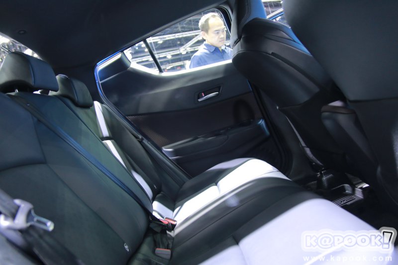 ห้องโดยสาร Toyota C-HR 2018 ใหม่ จึงพอเหมาะพอดีสำหรับผู้ขับขี่และผู้โดยสารตอนหน้า ขณะที่พื้นที่สำหรับผู้โดยสารด้านหลังจะรู้สึกอึดอัดแบบรถคูเป้ที่เน้นโดยสารกันสองคนเสียเป็นส่วนใหญ่ เนื่องจากกรอบหน้าต่างประตูหลังเล็กมากกว่าปกติ แต่นี่ไม่ใช่ความผิดพลาดในด้านการออกแบบ เพราะ Toyota ตั้งใจให้เป็นรถ เอสยูวี ทรงคูเป้ ที่เน้นไลฟ์สไตล์ชัดเจนมาตั้งแต่แรก แต่อย่างไรก็ตามเบาะหลังยังนั่งได้สบายพอสมควร