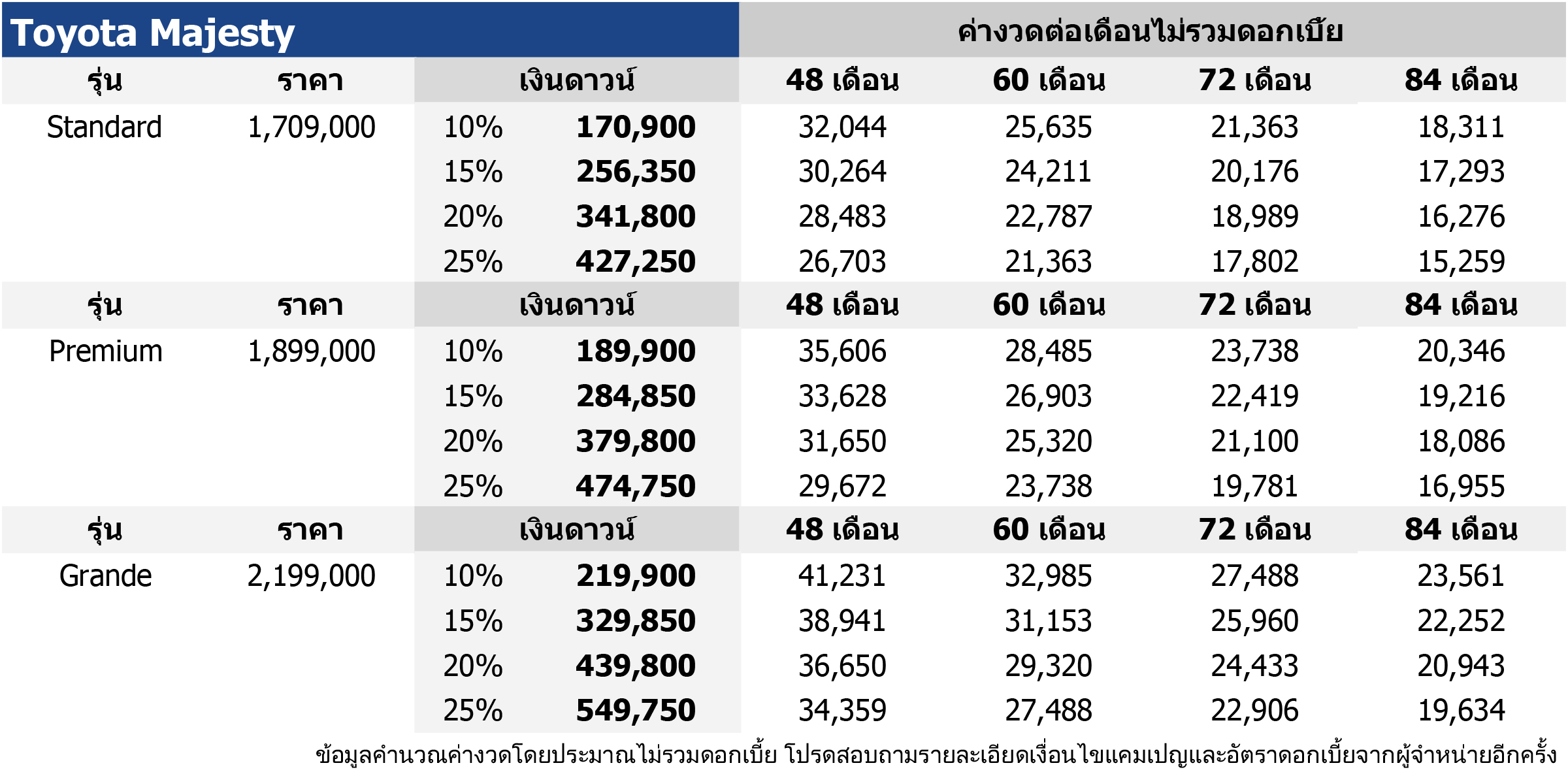 ราคารถ ผ่อน-ดาวน์ โตโยต้า มาเจสตี้ (Toyota Majesty)
