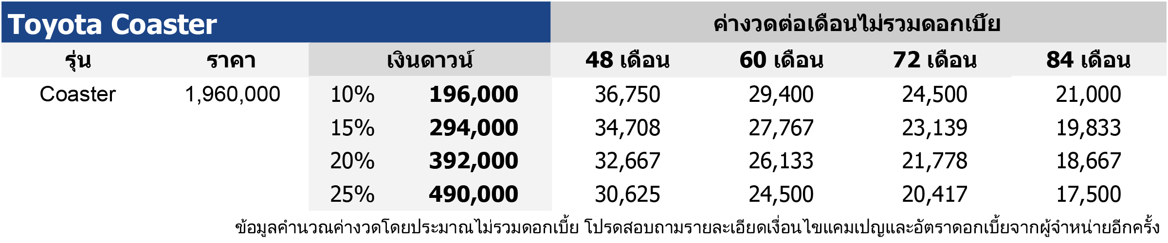 ราคารถ ผ่อน-ดาวน์ โตโยต้า โคสเตอร์ (Toyota Coaster)