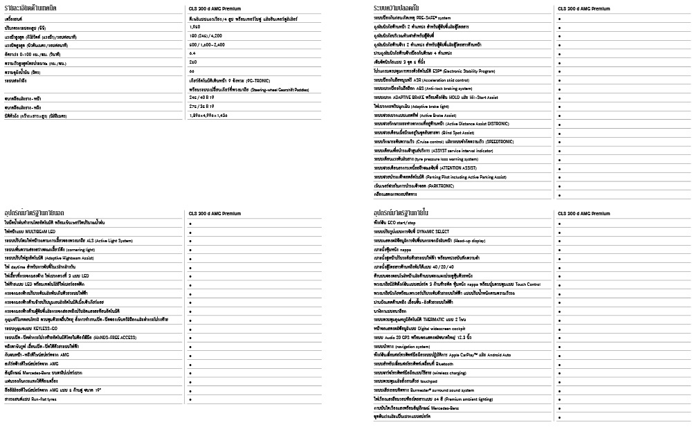 Mercedes-Benz CLS 300 d AMG Premium รุ่นประกอบในประเทศ เป็นรถยนต์สปอร์ตคูเป้ 4 ประตูรุ่นใหม่ ที่มาพร้อมกับดีไซน์สะท้อนแนวคิดของการออกแบบรถยนต์ในแบบฉบับของเมอร์เซเดส-เบนซ์ โฉบเฉี่ยวด้วยไฟหน้า MULTIBEAM LED และเสริมความมั่นใจให้กับผู้ขับขี่ด้วยนวัตกรรมและเทคโนโลยี