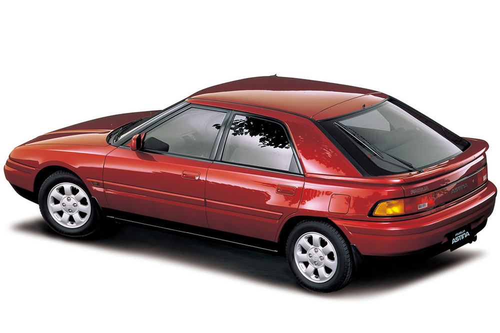 ถัดมา Mazda 323 เจเนเรชั่นที่ 6 ช่วงราวต้นยุค 90 ทำตลาดในไทย มีตัวถัง 4 ประตู สไตลิ่งใกล้เคียง Mercedes-Benz W124 (ท้ายโลงจำปา) ทั้งการปาดเฉียงเส้นบ่าตัวถัง การลบสันมุมท้ายรถ ตลอดจนบานกระจกประตูหลังและเสา C เหมือนจงใจ แต่มาในแพ็กเกจที่เล็กกว่า และแยกของเด็ดออกเป็น Mazda 323 Astina ไฟป๊อปอัพ ตัวถัง 5 ประตู เครื่องยนต์ 1.8 ลิตร แรงระดับ 140 แรงม้า จัดจ้านมาก โดยมี Toyota Corolla (AE92) GTI เป็นคู่ปรับแบบไม่ลดราวาศอก