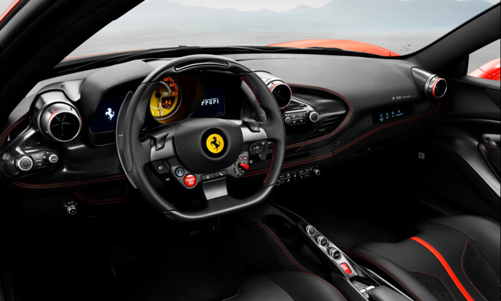 ส่วนภายในคล้ายเดิม Ferrari F8 Tributo 2019 แตกต่างจาก Ferrari 488 GTB แค่ในระดับรายละเอียด เช่น ช่องแอร์ทรงกลม แผงควบคุมและเบาะนั่ง แต่โดยรวมตำแหน่งการจัดวางหลักไม่เปลี่ยนแปลงไปแบบพลิกฝ่ามือ