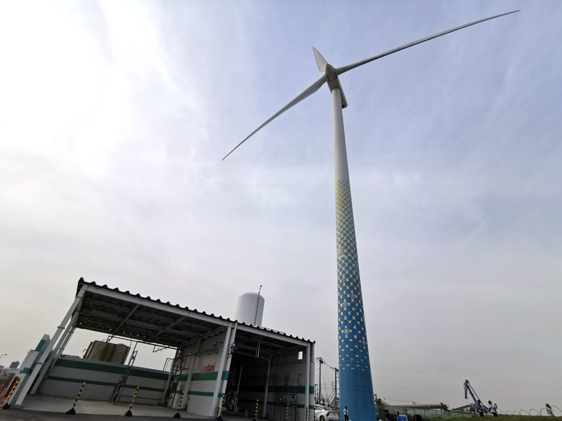 1. ระบบการผลิตไฮโดรเจนจากน้ำ ผ่านการใช้ไฟฟ้าจากพลังงานลม