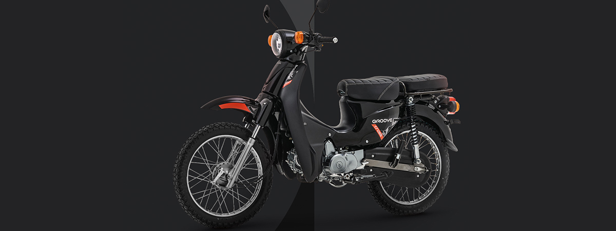 Solar Groove Cross 2023 (โซลาร์ กรูฟว์ ครอส 2023) รถมอเตอร์ไซค์ครอบครัวแนวเรโทร ราคาประหยัด ตกแต่งสไตล์แอดเวนเจอร์เพื่อให้วิ่งได้ทุกสภาพถนน ด้วยโช้คอัพยกสูงทำให้มีระยะห่างใต้ท้องมากกว่าปกติ พร้อมยางวิบากจากโรงงาน เบาะนั่งเป็นแบบ 2 ตอน โดยเบาะหลังสามารถถอดออกเปลี่ยนเป็นที่วางของได้ แต่มีให้เลือกเพียงสีเดียว