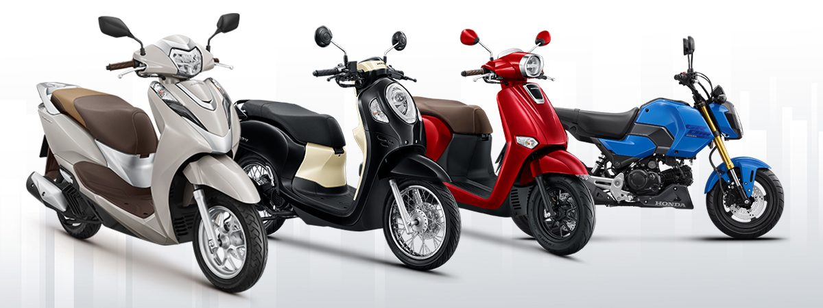 Honda Scoopy มอเตอร์ไซค์ออโตเมติกสไตล์โมเดิร์นคลาสสิกขนาด 125 ซีซี. มีไฟหน้า LED กุญแจรีโมต ช่องชาร์จสมาร์ตโฟน และที่เก็บของใต้เบาะ UBOX ขนาดใหญ่ ใส่หมวกกันน็อกได้ 1 ใบ แบ่งเป็น 3 รุ่น การตกแต่งต่างกัน คือ Urban, Prestige และ Club12